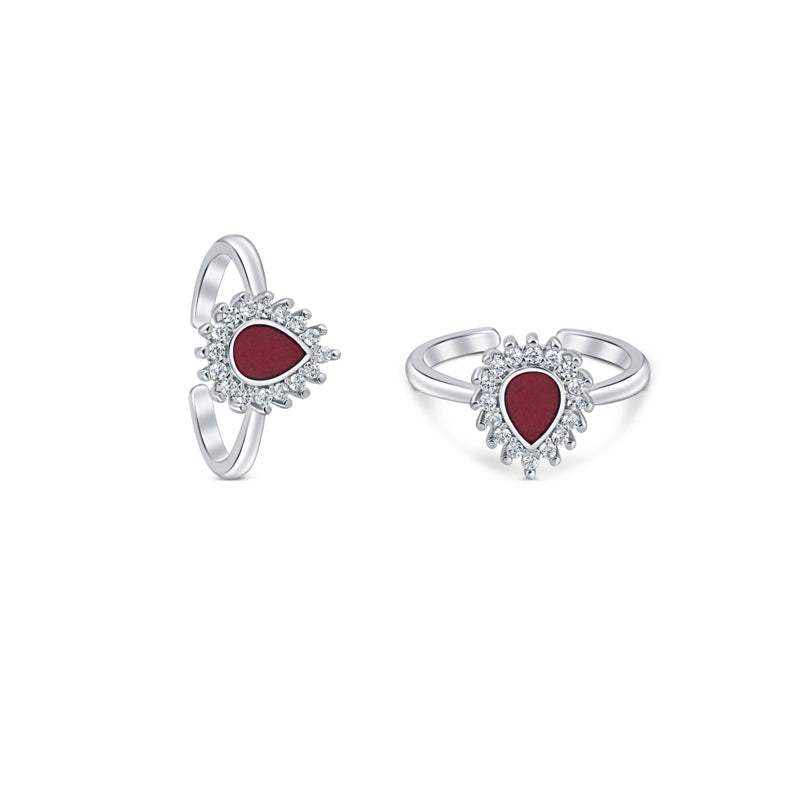 Droplets Sterling Silver Zirconia Toe Ring for Women with Red enamel