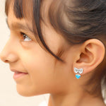 Add some heartfelt fun to your wardrobe with the Bowy Heart Blue Opal Dangler. Made of sterling silver with a rhodium finish, these danglers feature a blue opal heart hanging from bows. Perfect for a playful touch in your daily style.