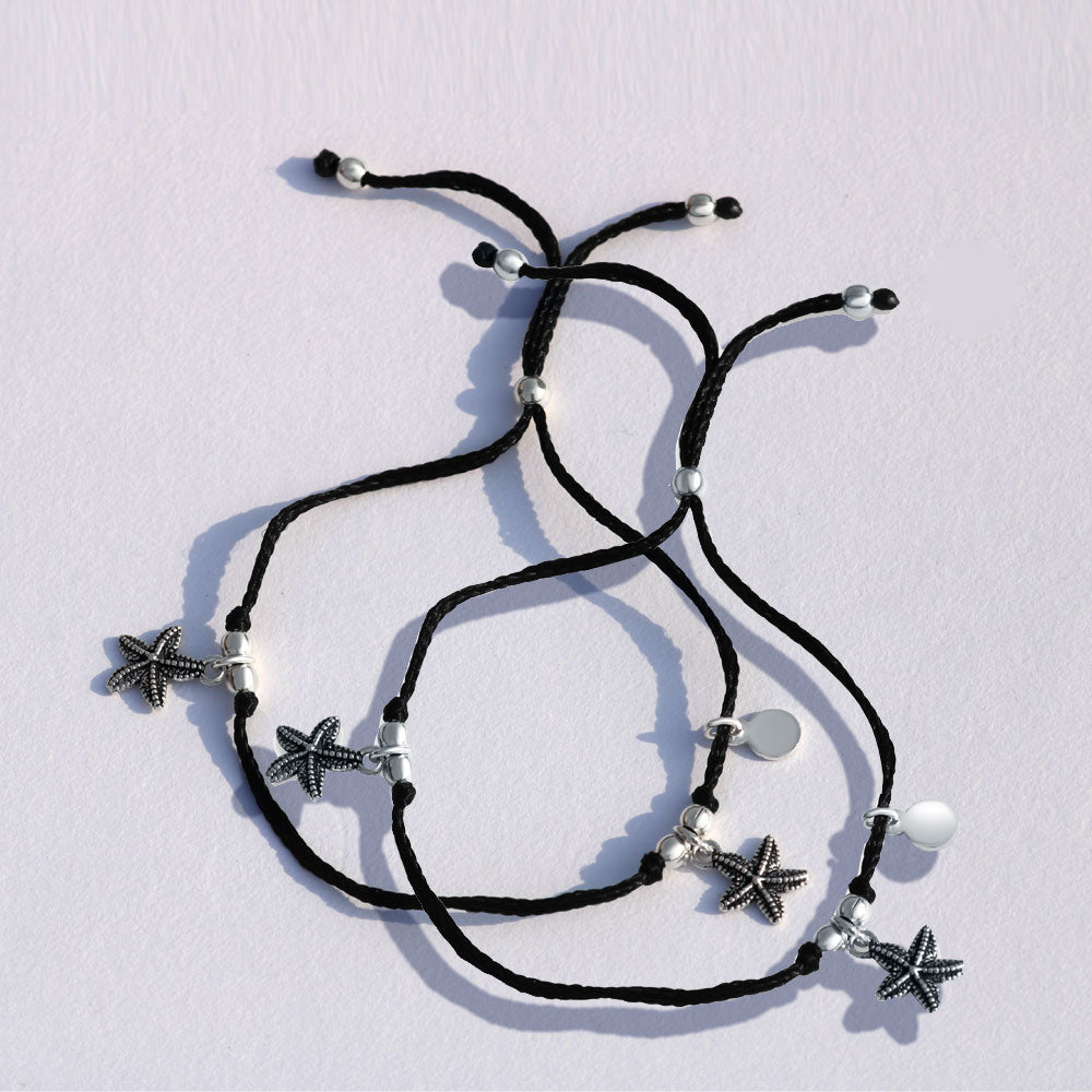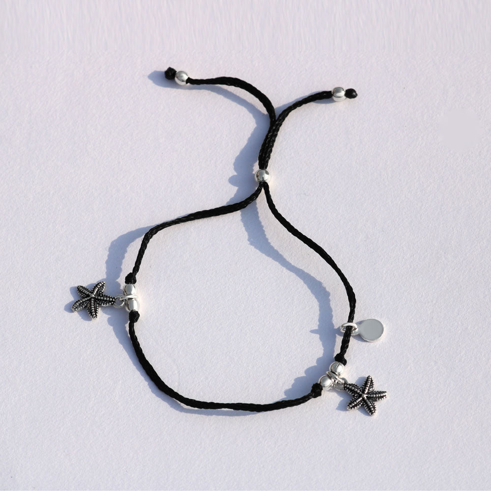 Add a touch of whimsical charm to your everyday look with our 925 Sterling Silver Coastal Charm Anklet. This delicate thread anklet features a black thread adorned with oxidized silver starfish motifs, evoking the carefree spirit of the coast. Perfect for all-day wear, this anklet is a thoughtful gift for her or a lovely treat for yourself.