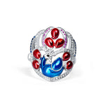 Dancing Peacock Sterling Silver Ring for Women with enamel and zirconia