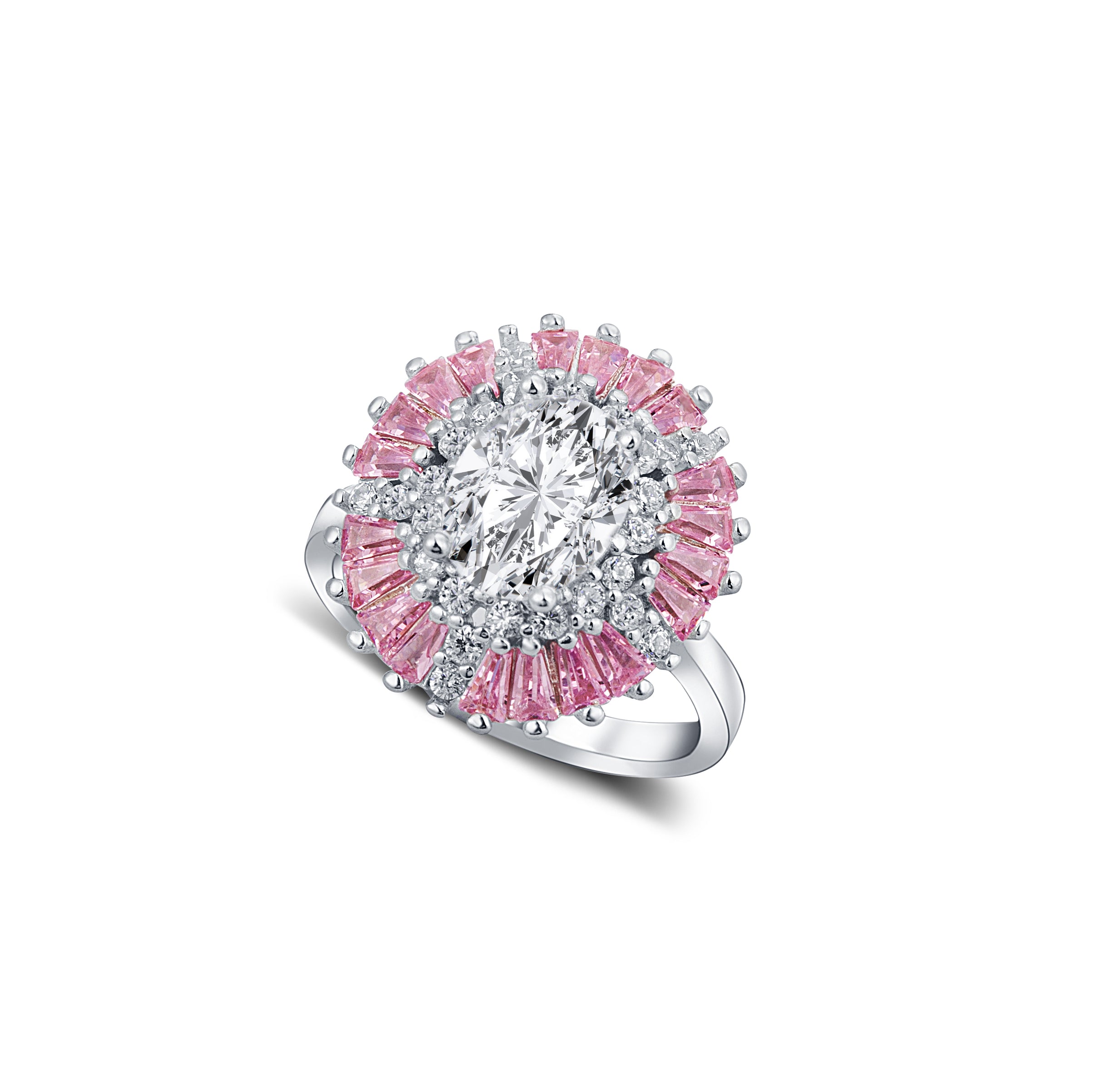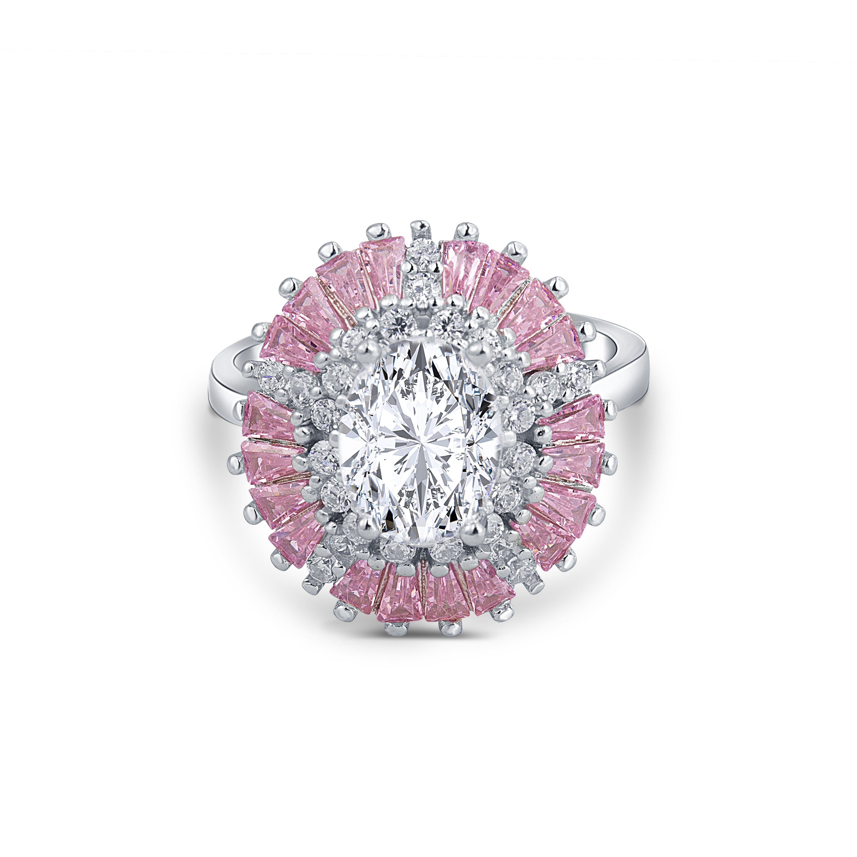 Dazzle your party outfit with this beautiful oval shape ring embedded in pink color stones for the perfect balance between sparkle and minimal.