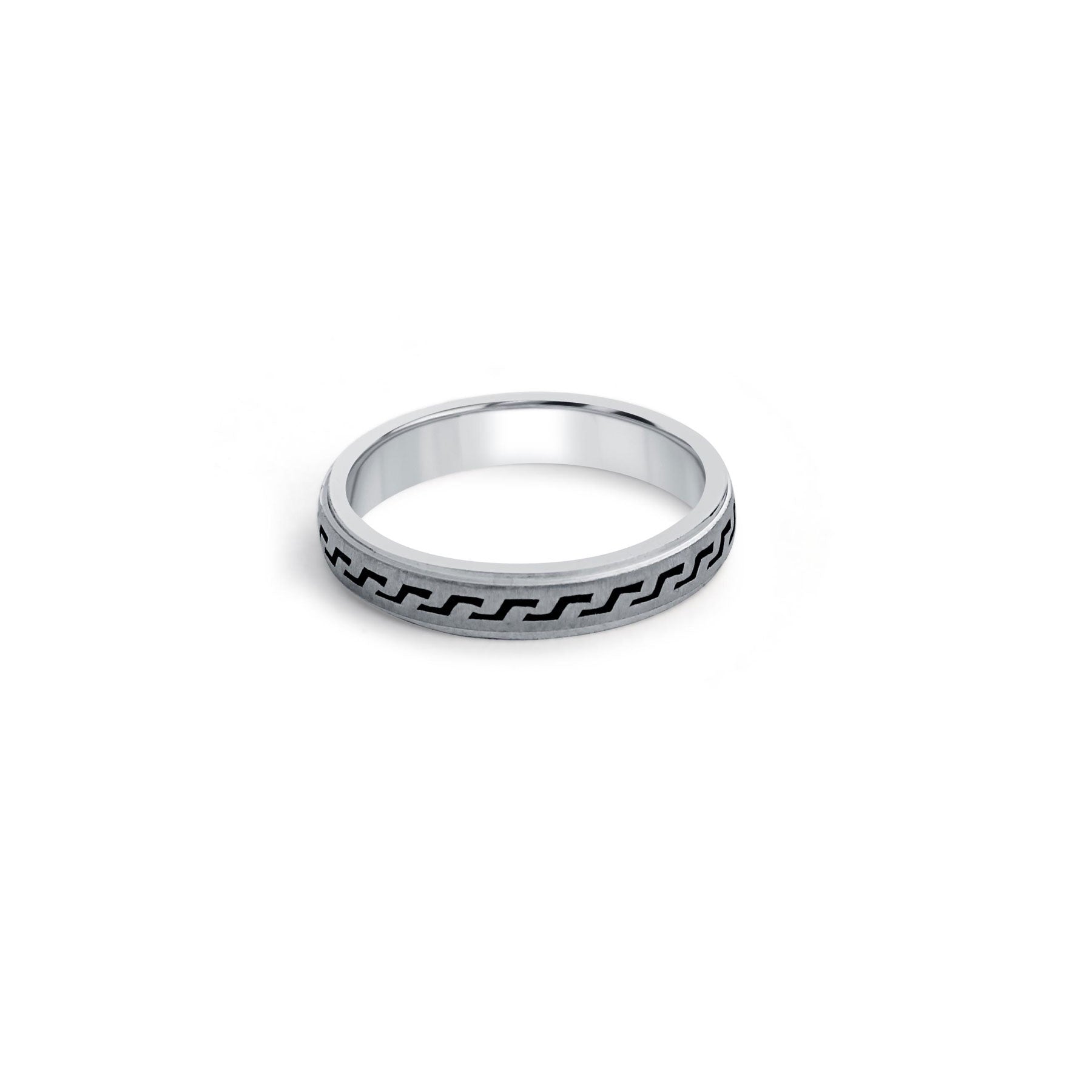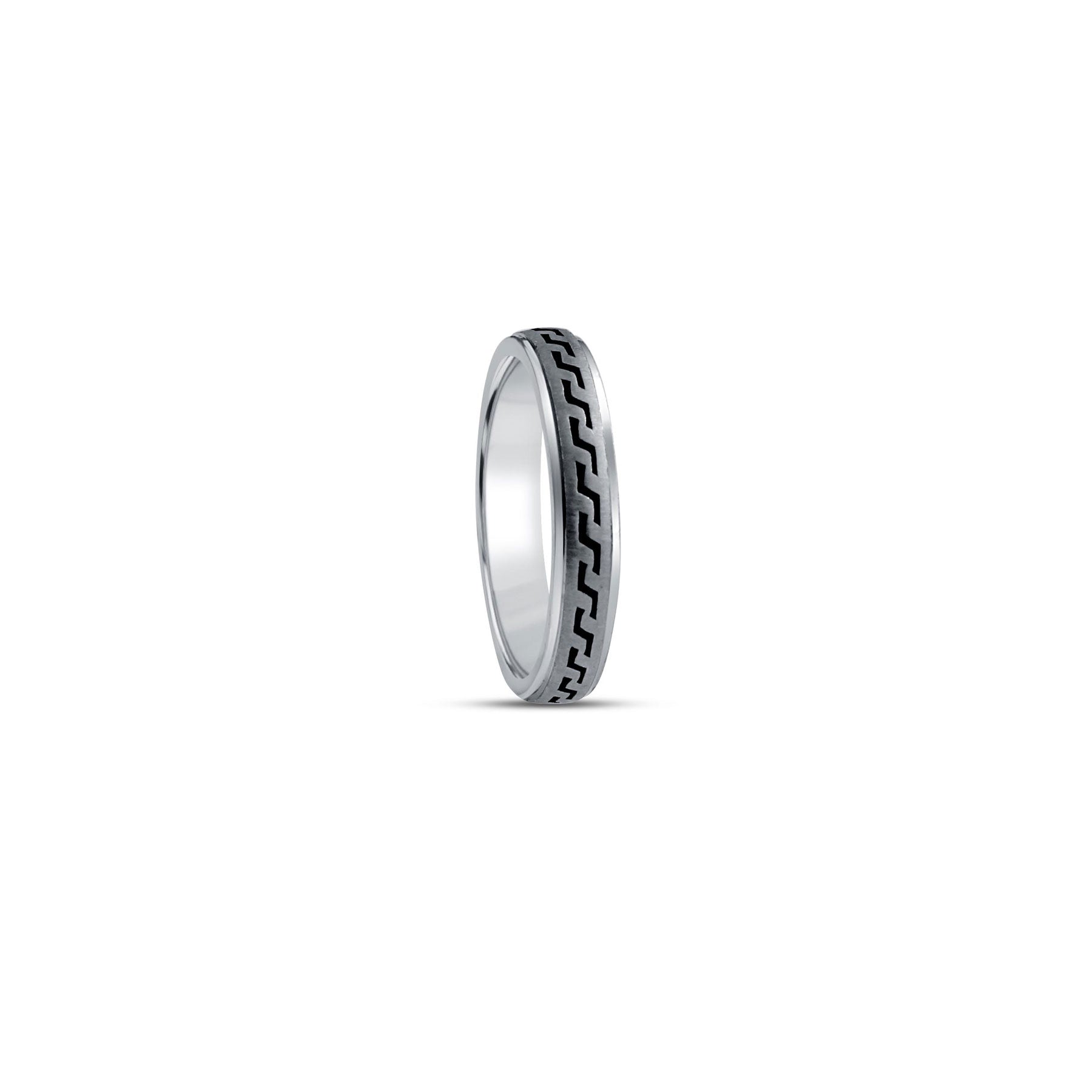 Designed for men who prefer clean lines with a modern twist, the Edgeway Band features a sleek zigzag pattern engraved across an oxidised silver surface. Crafted in pure 925 sterling silver, this band brings structure, movement, and understated confidence together in one design.