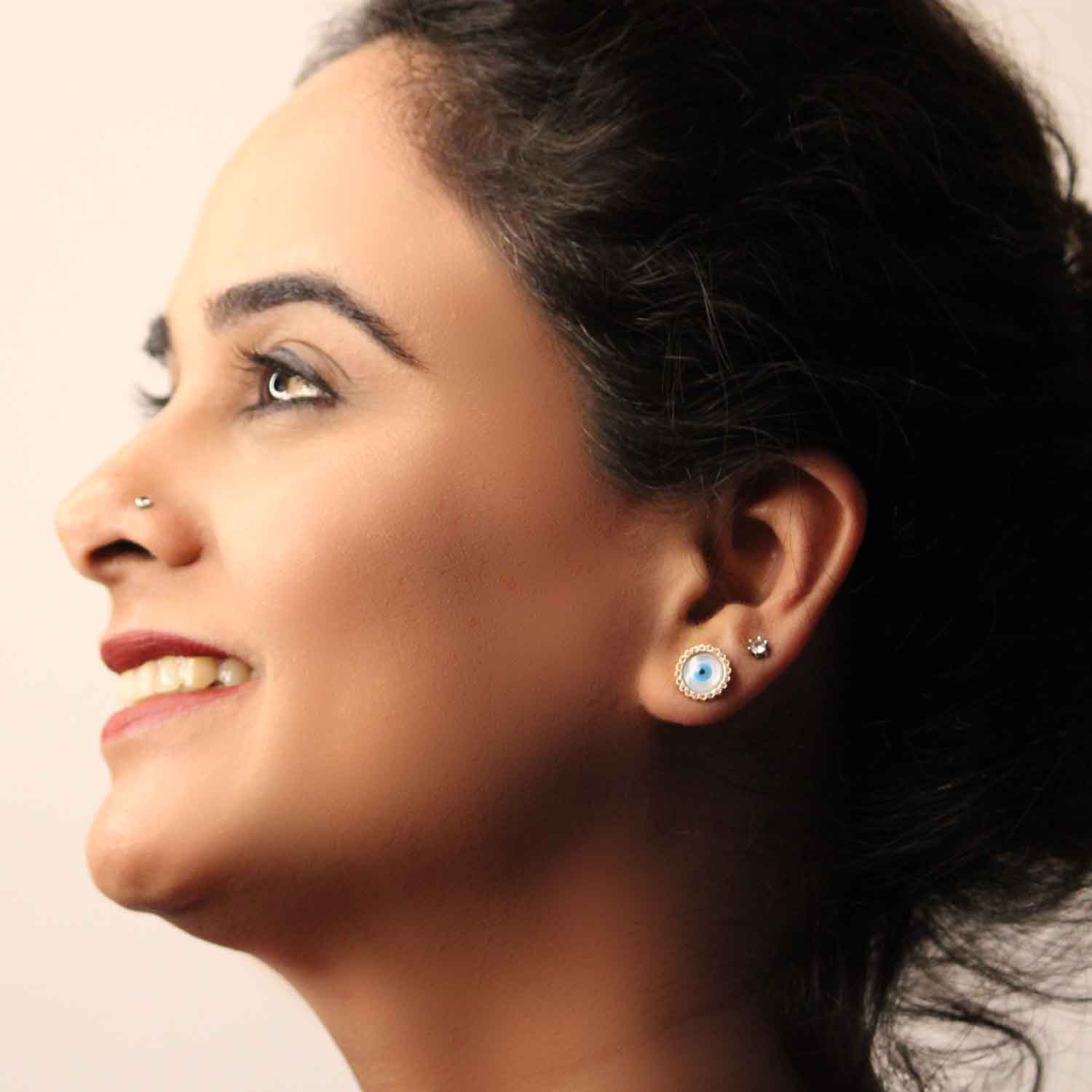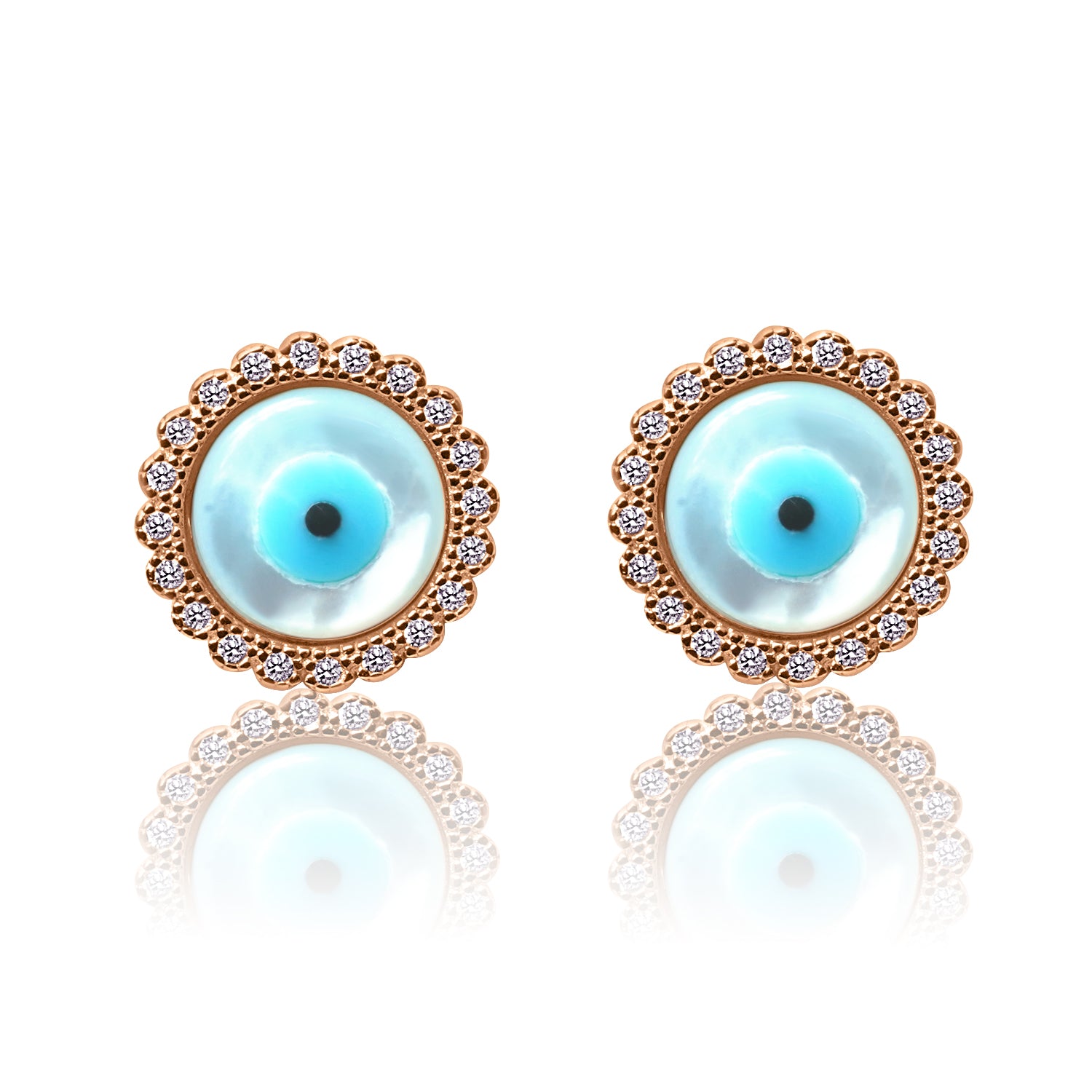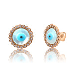 Flowery Evil Eye Rose Gold Sterling Silver Stud for Women