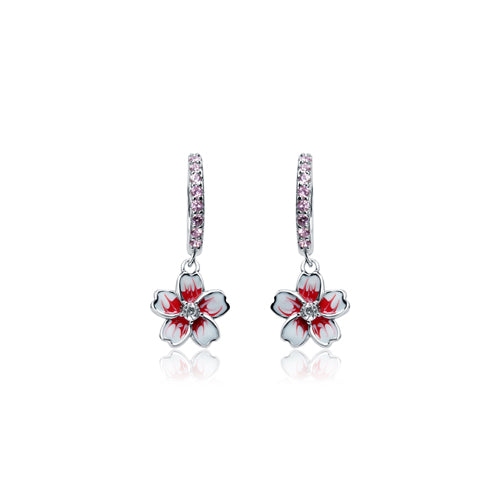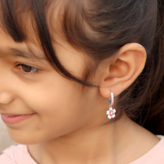Introducing the vibrant Hanging Flora Silver Dangling Hoops with Enamel - a stunning piece of jewelry that adds a touch of elegance and charm to any outfit. Crafted from the finest 92.5 sterling silver, these hoops feature a beautiful flower shape that is sure to capture your heart. The rhodium finish adds a touch of shine and sophistication to these earrings, making them a true statement piece. The enamel detailing on these earrings adds a pop of color and vibrancy, making them the perfect accessory to add some personality and flair to your ensemble. These earrings are the epitome of style and grace, perfect for any fashionista who loves to stand out from the crowd.