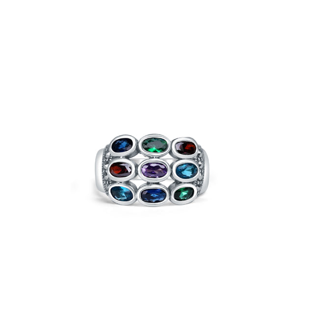 Another beautiful addition to our Silver Hoor Ring Jewellery Collection for Women is this exquisite Multi Stone Silver Ring. In the classic vintage design of a silver band studded with multi coloured gemstones, our Silver Hoor Ring is made of 92.5 Sterling Silver with an exotic oxidised silver finish. Just like its name Hoor, which means a beautiful elusive divine spirit, our Silver Hoor Ring is exquisite in its colour and style. Its multi-coloured stones catch and reflect light in so many hues. Our Multi Stone Silver Hoor Ring is that touch of glamour that makes your moment brighter.