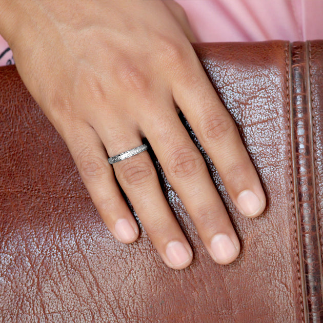 Our Mystic Desire Silver Band for Men is an exquisite addition to our Men’s jewellery collection. It is beautifully crafted with a line of mystical dots engraved in the band. The exquisite ornate border adds an exotic allure to the silver band. The silver band is made in 92.5 Sterling Silver with a glamorous Rhodium finish. Our Mystic Desire Silver Band for Men with its spiritual aura, is a perfect expression of the deep thinker in the progressive modern man of today.
