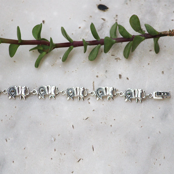 Marching Elephants Silver Bracelet for Women in Silver with Marcasites