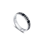 This classic black Thumb ring band for men combines the splendid bow pattern design and extensive rhodium finish. This black enamel band is made in 925 sterling silver which makes it durable enough to wear daily.
