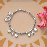 A dreamy delight for all the women out there! The Starry Heart Silver Bracelet is both whimsical and disarmingly beautiful, flowing like a starry night. Crafted in pure 92.5 sterling silver featuring heart and star-shaped elements with an oxidized silver finish to charm your soul. This bracelet is a must-have for any fashionista.
