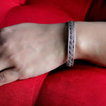 Introducing our exquisitely designed 925 sterling silver kada for women. The oxidised finish adds a touch of sophistication, while the intricate braid design in the centre exudes elegance. Perfect for all day wear, add a touch of luxury to your outfit with this kada.