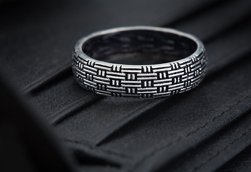 If you are looking for affordable and classy designs for your thumb ring band then this Weaved pattern sterling silver thumb ring band for men is perfect for you. This band thumb ring is made in 925 sterling silver and finished oxidized.